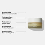 Inspired by in-office peels, the Fruit Acid Peel is 100% natural and contains only Alpha Hydroxy Acids naturally extracted from fruits. Its gel texture is very pleasant on contact with the skin. It offers the effectiveness of a glycolic acid chemical peel without irritation and redness. It accelerates cell renewal, smoothes the skin's surface, tightens pores, refines skin texture, reduces fine lines and restores skin's radiance.