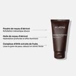 Ce gommage combine une double exfoliation : mécanique, grâce à la poudre fine de noyaux d’abricot et chimique, grâce à un complexe d’AHA extraits de fruits. L’huile de noyau d’abricot, riche en acides gras mono-insaturés, restaure le film hydrolipidique et prévient le dessèchement. Débarrassée des cellules mortes, la peau est lissée, adoucie et parfaitement préparée à recevoir un soin hydratant.
